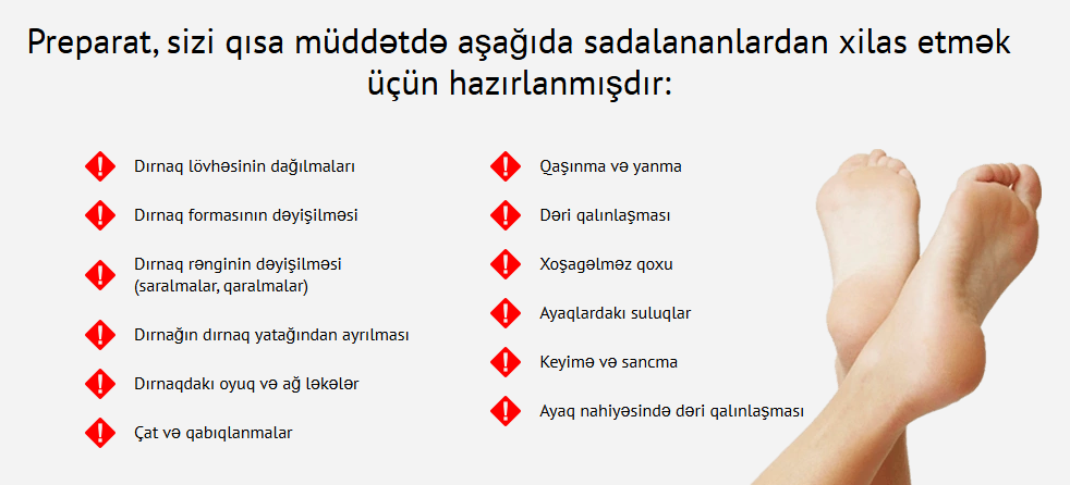 - Dəri və dırnaq nahiyəsində göbələk mənşəli narahatlıq əlamətləri müşahidə olunduqda